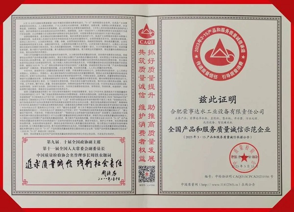 在中國質量檢驗協會主辦的2023年“3.15”產品和服務質量誠信承諾的主題活動中,榮事達憑借過硬的實力,獲得協會以及權威專家的一致認可,榮膺“全國凈水行業質量領先品牌”“全國產品和服務質量誠信示范企業”“全國質量檢驗穩定合格產品”“全國消費者質量信譽保障產品”多項榮譽。