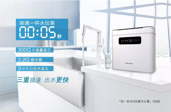 現(xiàn)代快節(jié)奏的生活下,人們對于“速度”的追求越發(fā)執(zhí)著。此次,榮事達(dá)發(fā)布的300G智能反滲透凈水機(jī)在出水速度提升上可謂是“不走尋常路”。其創(chuàng)新采用“大通量+大‘桶’量+大口徑龍頭”三重提速設(shè)計(jì),一方面選用“300加侖超大通量濾芯”,出水速度達(dá)到傳統(tǒng)50G凈水機(jī)的6倍;另一方面,用戶可DIY選裝3.2加侖儲(chǔ)水桶,搭配三分大口徑凈水龍頭,進(jìn)一步強(qiáng)化出水效率,接滿一杯200毫升水僅需5秒,讓用戶隨時(shí)享受不等待、不斷水的理想生活。