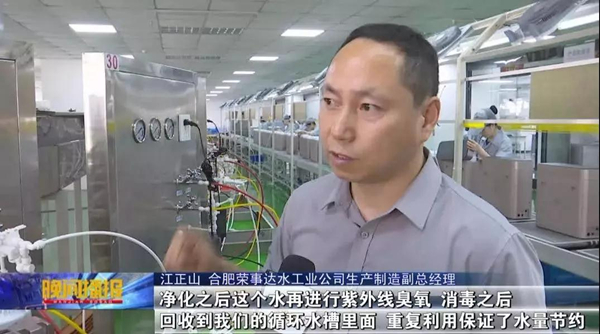 511日—517日為第二十八屆全國城市節約用水宣傳周,為引導廣大市民養成良好的節水習慣,同時推動節水技術在企事業單位發展中的普及,合肥新聞頻道開展“全國城市節約用水宣傳周”系列報道。516日晚2130分,合肥新聞頻道《晚間播報》節目播出新聞《循環利用“節水器”  助力綠色環?!?,就校園直飲水節水建設和企業綠色生產做了專題報道,并走進本土知名企業合肥榮事達水工業公司,見證了領先的凈水及節水技術。
