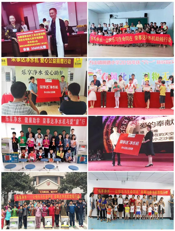早在2011年,榮事達就面向全國開展“樂享凈水?健康助學行動”,截至目前已向安徽、江蘇、陜西、江西、河南、河北等多個地區的學校捐贈凈水設備數千套。2016年,榮事達走進紅色革命老區金寨縣,向全國首個希望小學——金寨希望小學捐贈了直飲水設備,兩千多名師生因此喝上了健康直飲水。之后,榮事達聯合金寨希望公益服務中心及地方公益協會共同發起“給山區孩子一杯水”——援建金寨中小學凈水設備公益活動,榮事達援建400多套直飲水設備,幫助全縣的學校解決了飲水難題。該公益項目引發了社會各界熱烈關注,被評為“安徽省十佳學雷鋒志愿服務項目優秀典型”。立責于心,健康助學,在公益這條路上,榮事達未來將繼續推進,為更多校園送去安全水,盡心呵護孩子們健康成長。