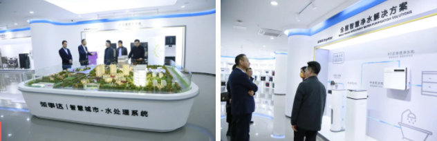 領導一行先后參觀了榮事達商用設備生產車間、榮事達智能家用凈水生產車間和智慧水世界展廳。了解榮事達企業綜合實力及十大水處理系統具體發展狀況。