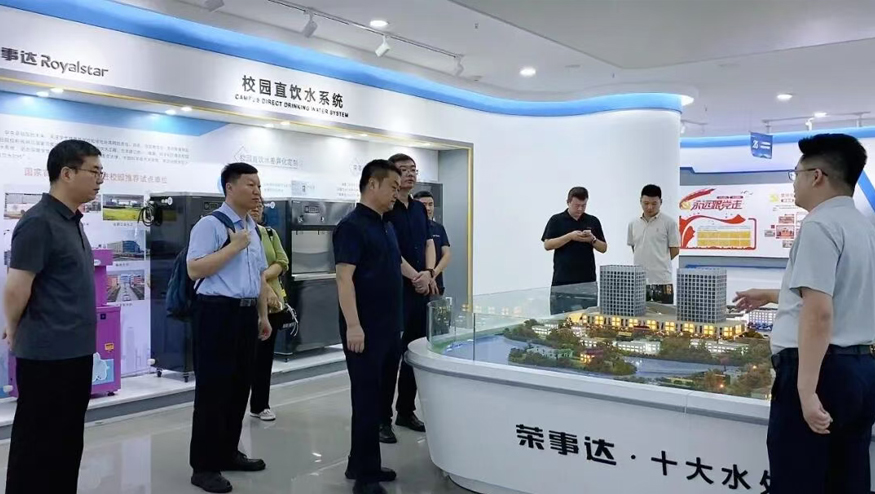 領導一行參觀了解集團的全屋智慧凈水項目、社區智慧飲水項目以及校園直飲水項目等。