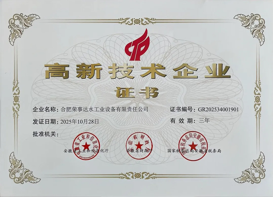 要聞 |合肥榮事達(dá)水工業(yè)榮膺“高新技術(shù)企業(yè)”認(rèn)證